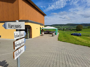 Für die Kinder steht eine Hüpfburg zur Verfügung. Diese ist überdacht und kann bei jedem Wetter genutzt werden. Zudem verfügen wir über einen grossen Fahrzeugpark an Dreirädern, Trampitraktoren und einen Spielplatz mit Karussell, Rutschbahn und Schaukel.